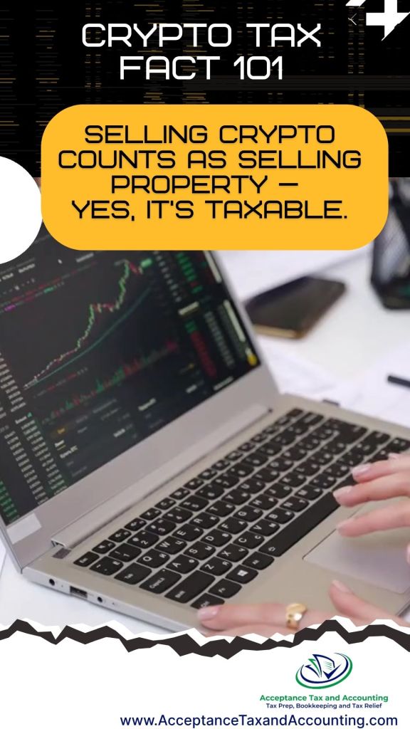Selling crypto counts as selling property — yes, it’s taxable.